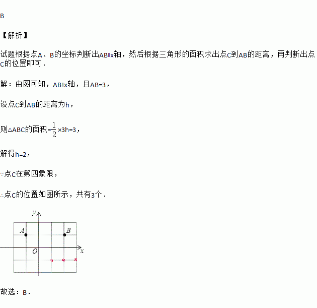 如图,在5×4的方格纸中,每个小正方形边长为1,点O,A,B在方格纸的交点(格点)上,在第四象限内的格点上找点C,使三角形ABC的面积为3,则这样的点C共有( )