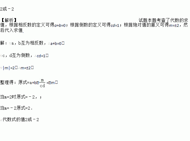 若a,b互为相反数,c,d互为倒数,|m|=2,求a﹣(﹣b)﹣的值