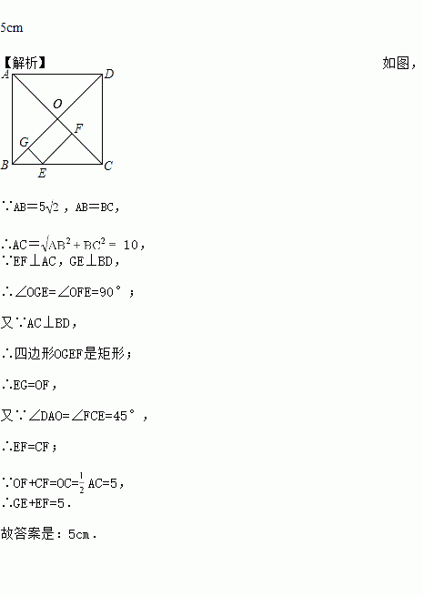 在正方形ABCD中,E为BC上一点,EF⊥AC,EG⊥BD,垂足分别为F、G,如果cm,那么EF+EG的长为______.