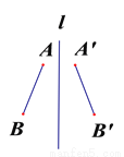 下列图形中,线段AB和A’B’ (AB=A’B’)不关于直线l对称的是( )