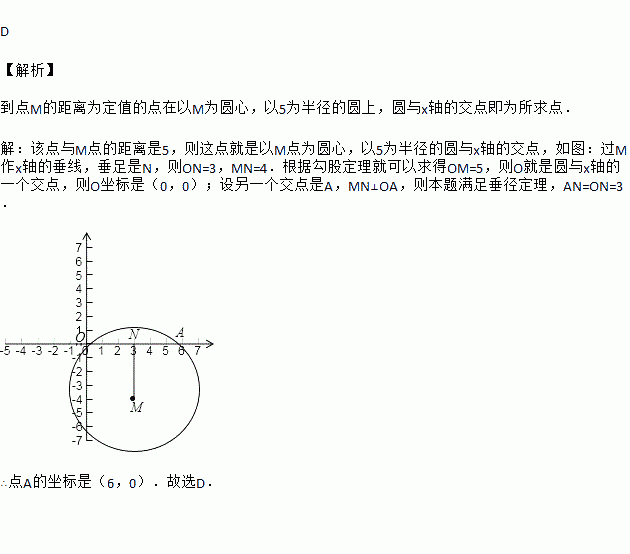 在已知点M(3,﹣4),在x轴上有一点与M的距离为5,则该点的坐标为( )