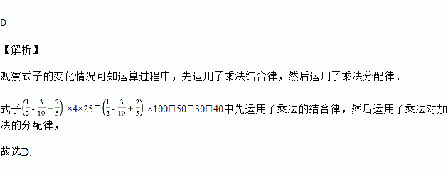 C. 加法结合律及乘法对加法的分配律 D. 乘法结合律及乘法对加法的分配律