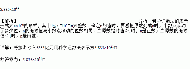 今年十一假期,全国共接待国内游客7.05亿人次,实现国内旅游收入5835亿元,将旅游收入5835亿元用科学记数法表示为_____.