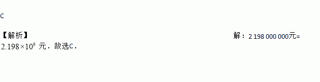 为举办广州亚运会,亚组委共投入了2 198 000 000元人民币建造各项体育设施,用科学记数法表示该数据是( )