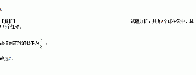 在一个不透明的口袋中,装有5个红球3个白球,它们除颜色外都相同,从中任意摸出一个球,摸到红球的概率为( )