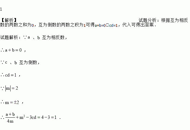 若、互为相反数, 、互为倒数, ,求的值.