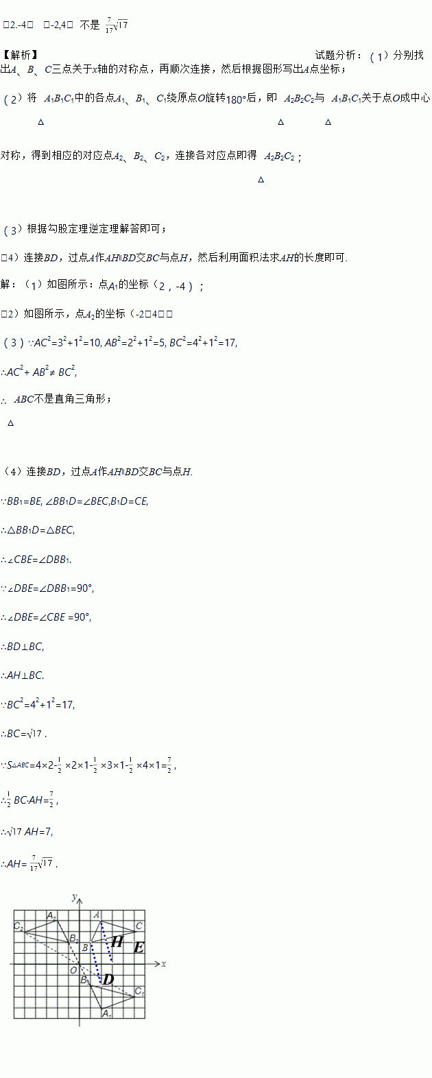 如图,在平面直角坐标系中,△ABC的三个顶点都在格点上,点A的坐标为(2,4).