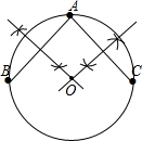 首先作出AB和AC的垂直平分线,两线的交点就是圆心O,再以O为圆心,OB长为半径画圆即可.