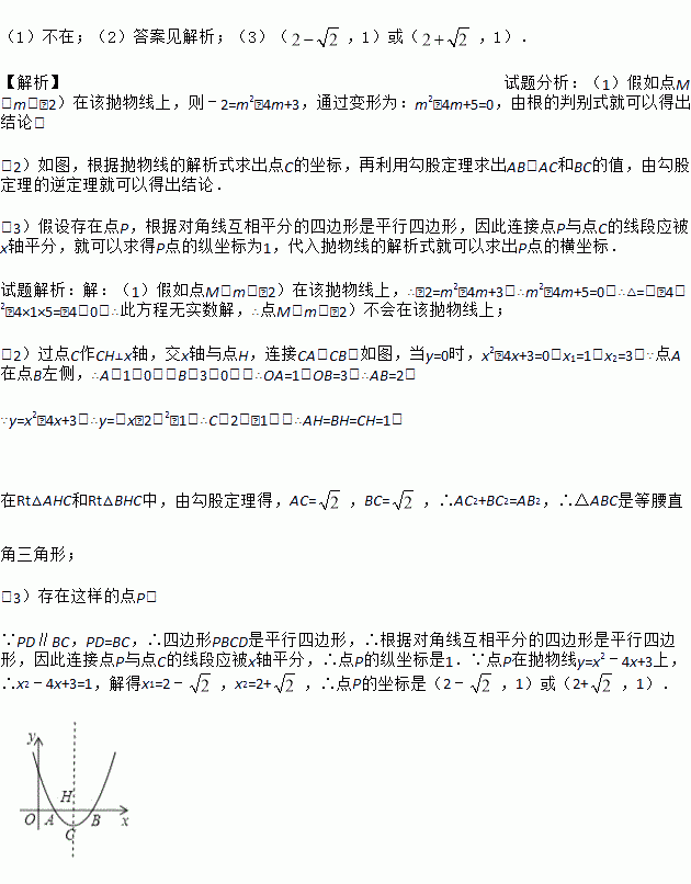 (1)对于任意实数m,点M(m,﹣2)是否在该抛物线上?请说明理由;