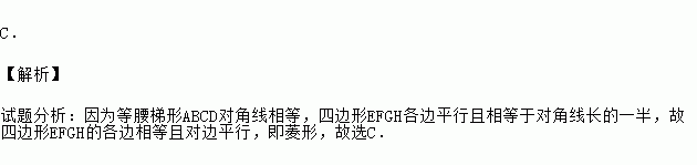 等腰梯形ABCD中,E、F、G、H分别是各边的中点,则四边形EFGH的形状是