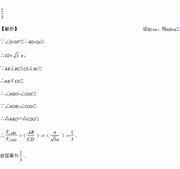一副三角板叠放如图,则△AOB与△DOC的面积之比为_____________.