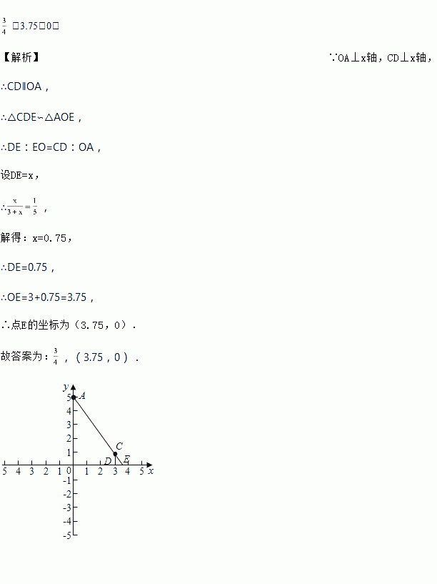 直角坐标平面内,一点光源位于A(0,5)处,线段CD⊥x轴,D为垂足,C(3,1),则CD在x轴上的影长为________ ,点C的影子的坐标为_________ .