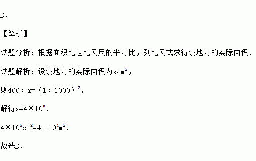 比例尺为1:1000的图纸上某区域面积400cm2,则实际面积为 ( )