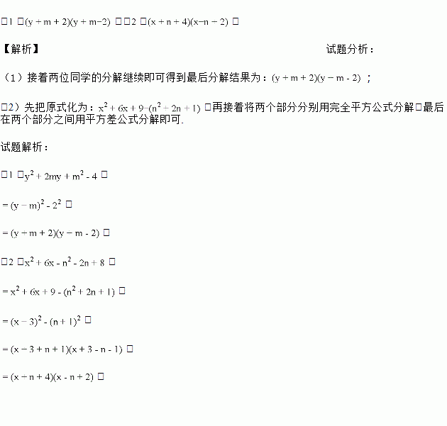 ()请你根据上面的启发,把下面的式子进行因式分解(参照两位同学的做法写出必要的步骤):![]()