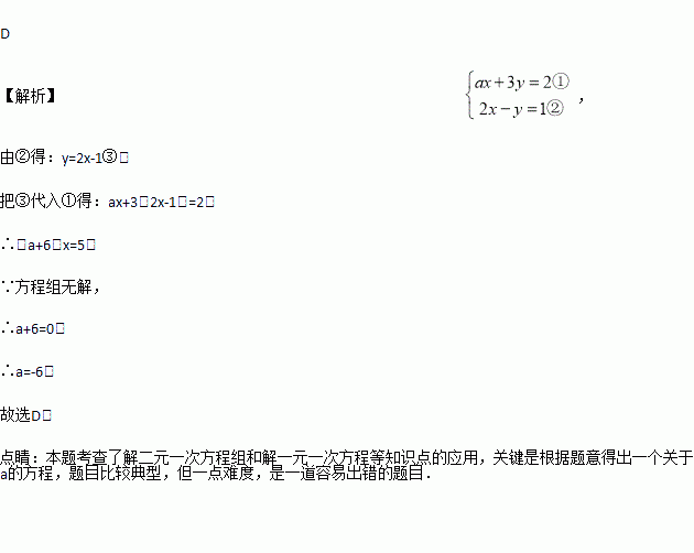 已知二元一次方程组无解,则a的值是( )