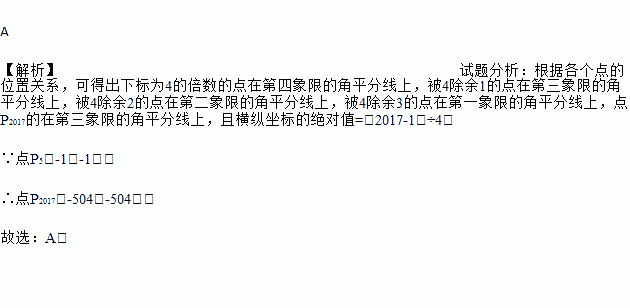 如图,在平面直角坐标系中,每个最小方格的边长均为1个单位长度,P1,P2,P3,…均在格点上,其顺序按图中“→”方向排列,如:P1(0,0),P2(0,1),P3(1,1),P4(1,-1),P5(-1,-1),P6(-1,2),…,根据这个规律,点P2 017的坐标为( )