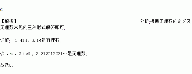 在-1.414,,,3.14,2,3.212212221…这些数中,无理数的个数为( )