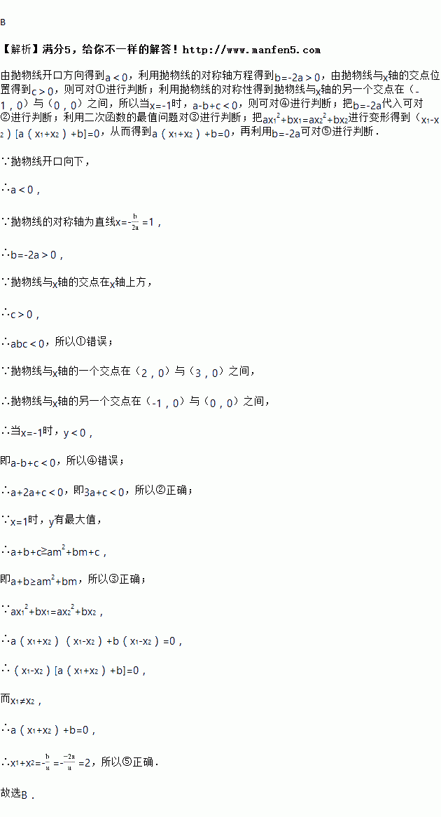 ①abc>0;②3a+c<0;③a+b≥am2+bm;④a﹣b+c>0;⑤若ax12+bx1=ax22+bx2,且x1≠x2,则x1+x2=2.