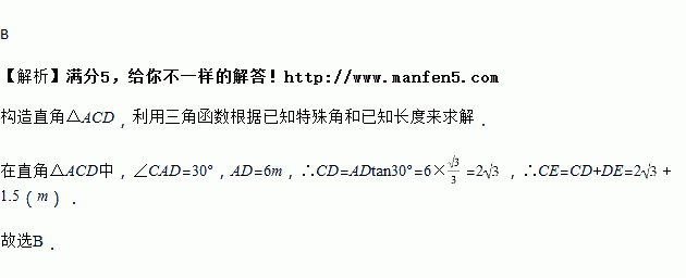 如图,小颖利用有一锐角是的三角板测量一棵树的高度,已知她与树之间的水平距离,她的眼睛距地面的距离,那么这棵树高( )
