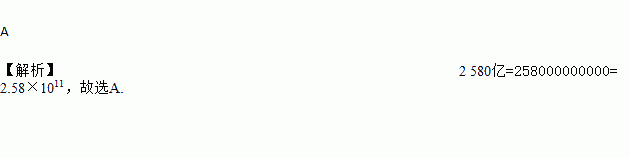 A 【解析】2 580亿=258000000000= 2.58×1011,故选A.