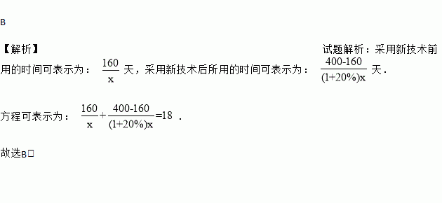 某服装加工厂计划加工400套运动服,在加工完160套后,采用了新技术,工作效率比原计划提高了20%,结果共用了18天完成全部任务.设原计划每天加工x套运动服,根据题意可列方程为( )