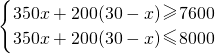 某服装店欲购甲、乙两种新款运动服,甲款每套进价350元,乙款每套进价200元,该店计划用不低于7600元且不高于8000元的资金订购30套甲、乙两款运动服.
