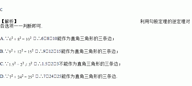A. 6,8,10 B. 9,12,15 C. 1.5,2,3 D. 7,24,25