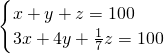 用100枚铜板买桃,李,榄橄共100粒,己知桃,李每粒分别是3,4枚铜板,而榄橄7粒1枚铜板.问桃,李,榄橄各买几粒?