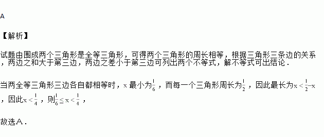 长为l的一根绳,恰好可围成两个全等三角形,则其中一个三角形的最长边x的取值范围为( )