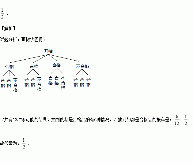 在一个不透明的箱子中装有4件同型号的产品,其中合格品3件、不合格品1件,现在从这4件产品中随机抽取2件检测,则抽到的都是合格品的概率是 .