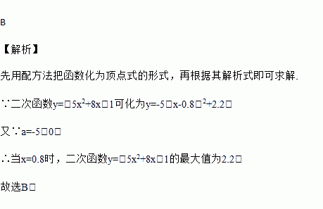 对于二次函数y=-5x2+8x-1,下列说法中正确的是( )