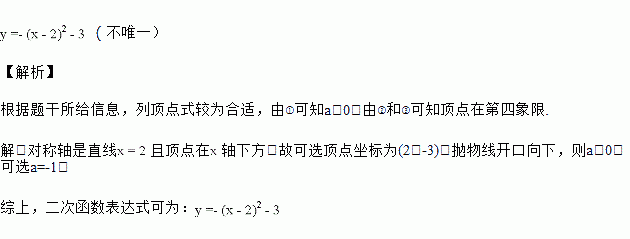 请选择一组你喜欢的、、的值,使二次函数的图象同时满足下列条件:①开口向下,②对称轴是直线;③顶点在轴下方,这样的二次函数的解析式可以是________.