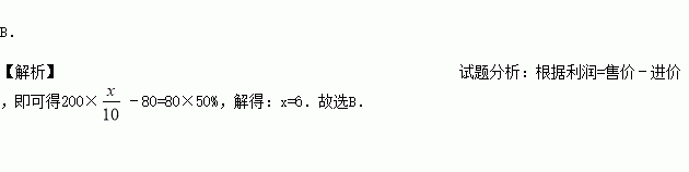 某服装进货价80元/件,标价为200元/件,商店将此服装打折销售后仍获利50%,则为( )