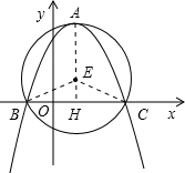 如图,已知抛物线y=ax2+bx+c(a<0)的顶点A在以E(1,1)为圆心,2为半径的圆上,且该抛物线经过⊙E与x轴的两个交点B、C,AE⊥x轴.