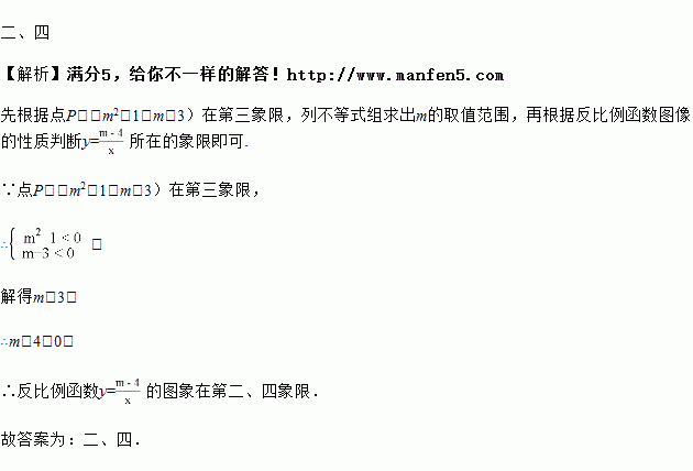 若点P(﹣m2﹣1,m﹣3)在第三象限,则反比例函数y=的图象在第_____象限.