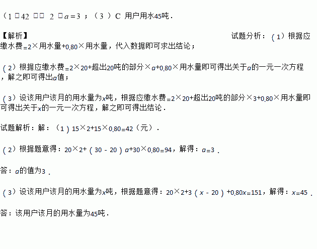 元,求该用户该月用水量.