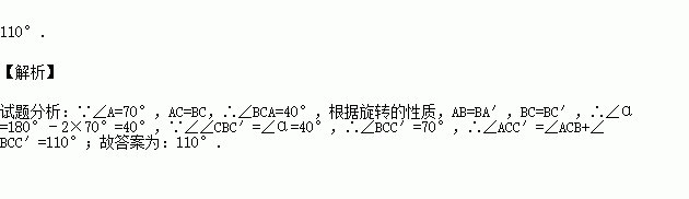 (3分)如图,在△ABC中,∠A=70°,AC=BC,以点B为旋转中心把△ABC按顺时针旋转α度,得到△A′B′C,点A恰好落在AC上,连接CC′,则∠ACC′= .
