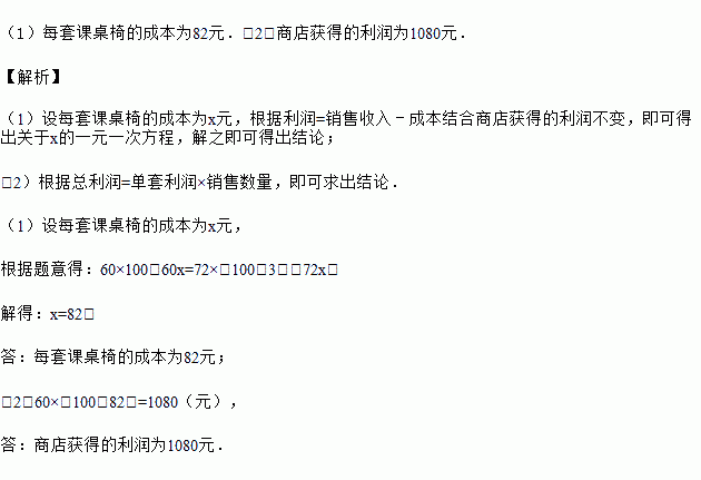 学校准备添置一批课桌椅,原计划订购60套,每套100元,店方表示:如果多购,可以优惠.结果校方实际订购了72套,每套减价3元,但商店获得了同样多的利润.