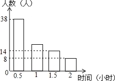 随着“微信”的流行,不少初中学生在微信朋友圈忙着“发状态”,某校在使用微信的学生中随机抽取了部分,并调查他们平常每天上微信的时间,绘制了统计表和条形统计图:
