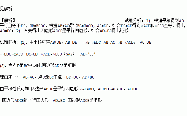 (2)当点D在什么位置时,四边形ADCE是矩形,请说明理由.