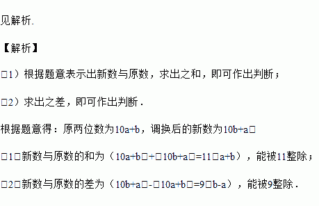 (1)计算新数与原数的和,这个和能被11整除吗?为什么?