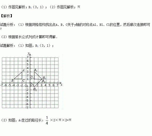 ⑴ 画出△ABC关于y轴对称的△A1B1C1,并写出B1的坐标.