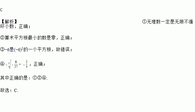 ①无理数一定是无限不循环小数 ②算术平方根最小的数是零