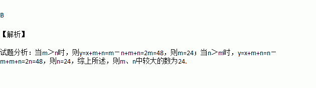 已知、为两个不相等的有理数,根据流程图中的程序,当输出数值为48时,所输入的、中较大的数为( )