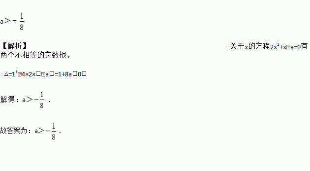 若关于x的方程2x2+x﹣a=0有两个不相等的实数根,则实数a的取值范围是_____.