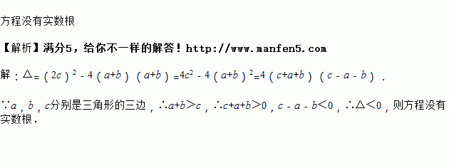 已知a,b,c分别是三角形的三边,则方程(a+b)x2+2cx+(a+b)=0的根的情况是_____.