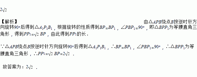 如图,将△APB绕点B按逆时针方向旋转90°后得到△A1P1B,连接PP1.若BP=2,则线段PP1的长为________.