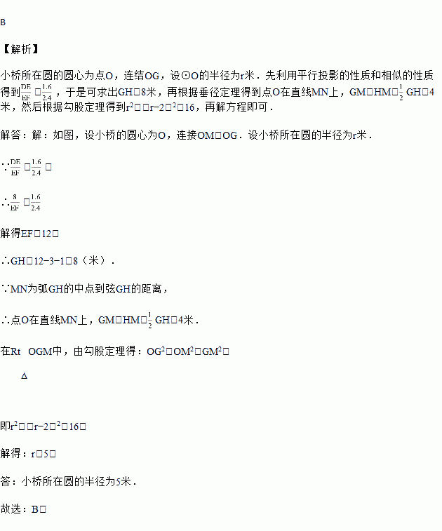 米,则小桥所在圆的半径为( )![]()