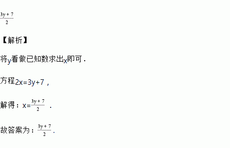 把方程2x=3y+7变形,用含y的代数式表示x,x=_____.