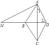 如图,在菱形ABCD中,∠BAD=60°,点M是菱形对角线DB延长线上的一点,把△AMB绕点A